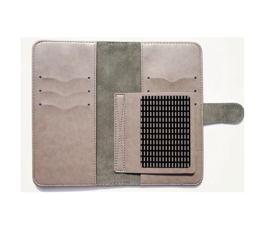 また、カードなど両面6枚まで収納可能で再剥離テープで何度でもケースの付け替えが可能。ベルト部分に微弱マグネット内蔵しており開け閉めが簡単に。