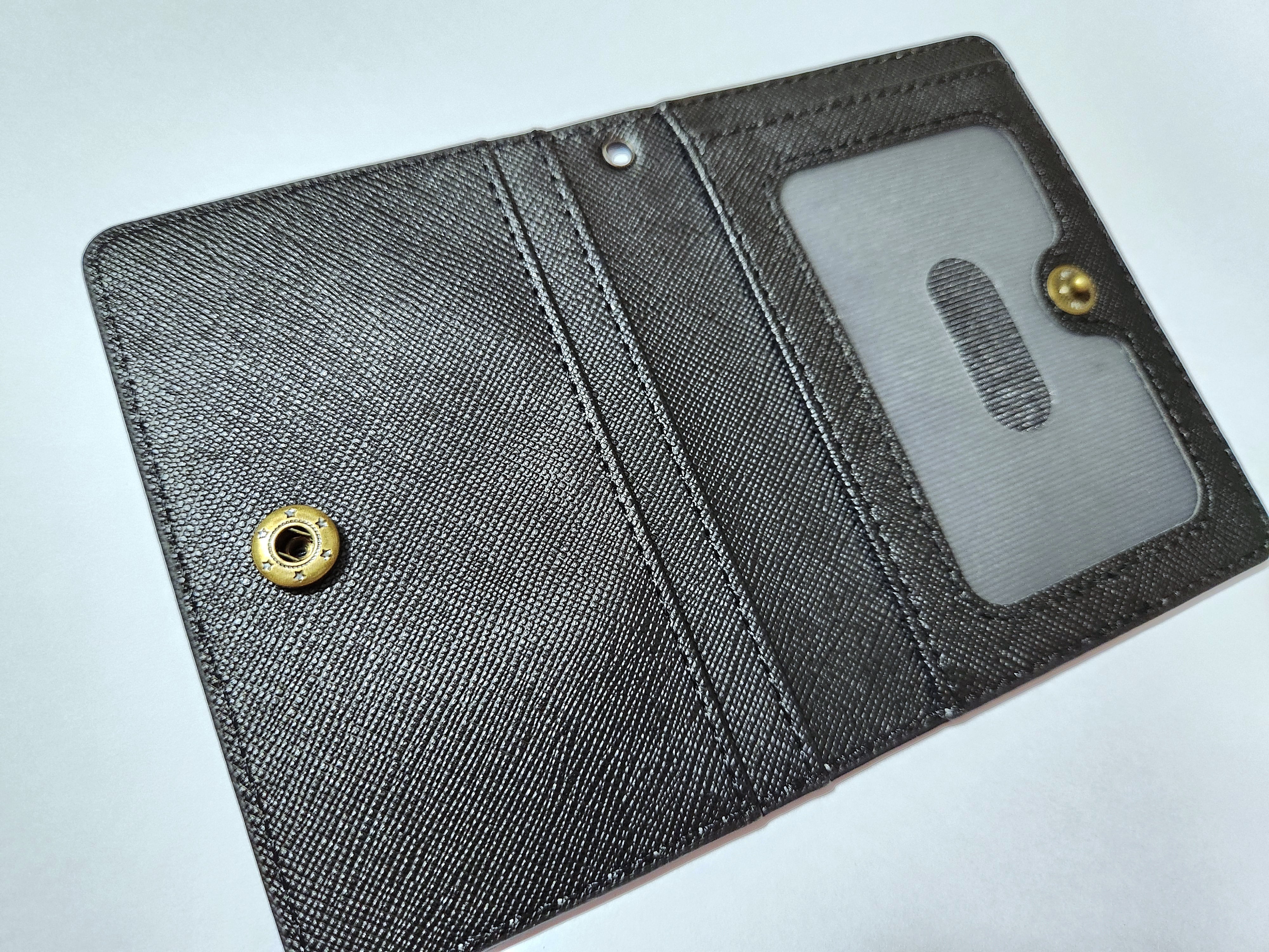 小さくても多機能。高級感のある合成皮革の二つ折りパスケースです。