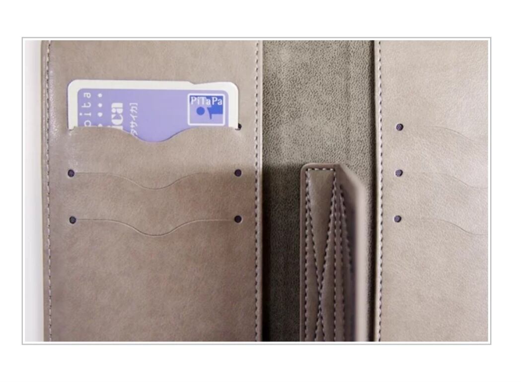 また、カードなど両面6枚まで収納可能で再剥離テープで何度でもケースの付け替えが可能。ベルト部分に微弱マグネット内蔵しており開け閉めが簡単に。